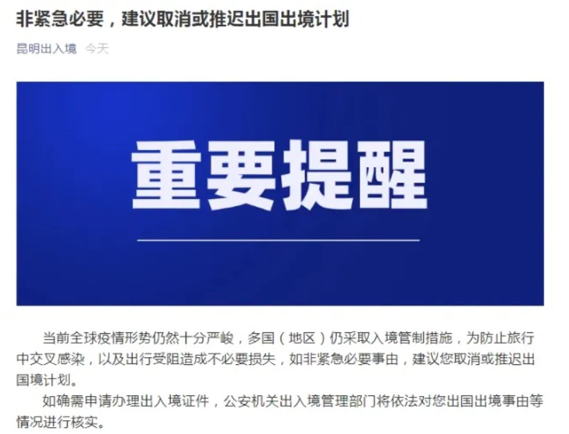 昆明市公安局出入境管理局重要提醒!