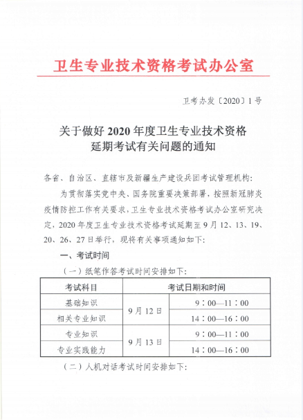 關(guān)于延期舉行2020年護士執(zhí)業(yè)資格考試的通知