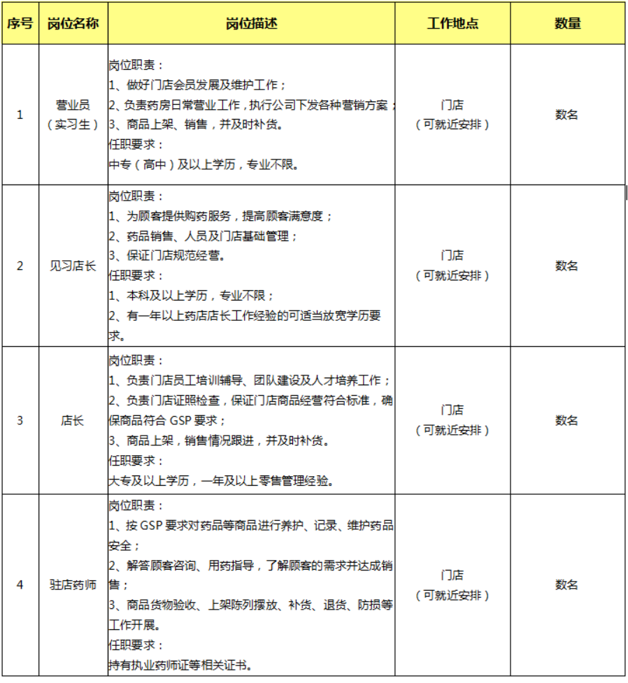 一心堂藥業(yè)集團(tuán)股份有限公司招聘公告