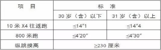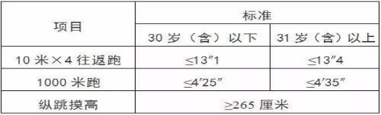 體能測試參照《公安機關錄用人民警察體能測評項目和標準(暫行)》進行。具體標準如下: