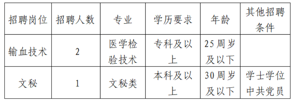紅河州中心血站2023年公開招聘編外工作人員簡章