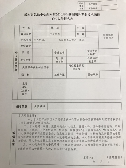 附件:云南省急救中心面向社會公開招聘編制外專業(yè)技術(shù)崗位人員報名表
