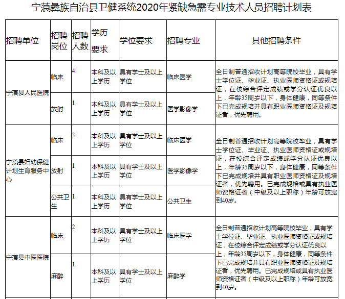 麗江市寧蒗彝族自治縣衛(wèi)生健康局2020年公開招聘編制內(nèi)緊缺急需專業(yè)技術(shù)人員的公告