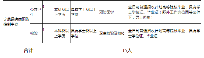 為進一步充實和優(yōu)化寧蒗縣醫(yī)療衛(wèi)生人才隊伍,經(jīng)縣人民政府同意,寧蒗縣人民醫(yī)院、縣中醫(yī)院、寧蒗縣疾病預防控制中心、寧蒗縣婦幼保健計劃生育服務中心、根據(jù)《事業(yè)單位公開招聘人員暫行規(guī)定》(人事部令第6號)、《云南省事業(yè)單位公開招聘工作人員辦法》(云人社發(fā)[2016]182號)和《關(guān)于進一步規(guī)范麗江市事業(yè)單位緊缺急需工作人員招聘的通知》(麗人社事〔2019〕66號)規(guī)定,4個單位面向醫(yī)學院校畢業(yè)生公開招聘緊缺急需醫(yī)療衛(wèi)生專業(yè)技術(shù)人員15名,現(xiàn)將相關(guān)事宜公告如下: